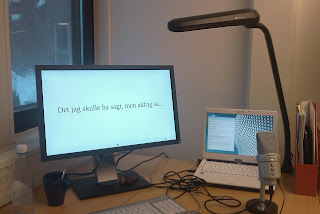 För webbsändningen använde jag http://www.livestream.com, den inbyggda webbkameran och en rätt schysst mikrofon.