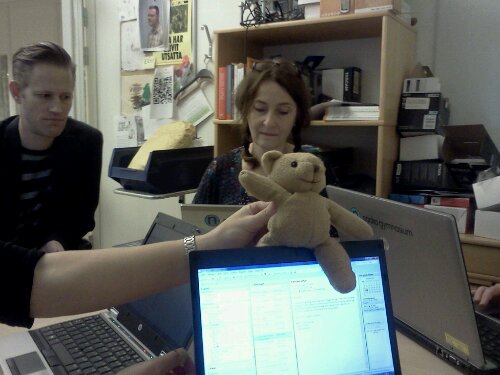 Vill ni veta mer om vårt pedagogiska utvecklingsarbete så har ni vår sajt Pedagogisk Verkstad här. Jag vill bara uppmärksamma er på att även om jag är pappaledig svävar min ande över skolan…notera Pelle Penna i bakgrunden som kikar över axeln på kollegorna Johan och Gunnel.